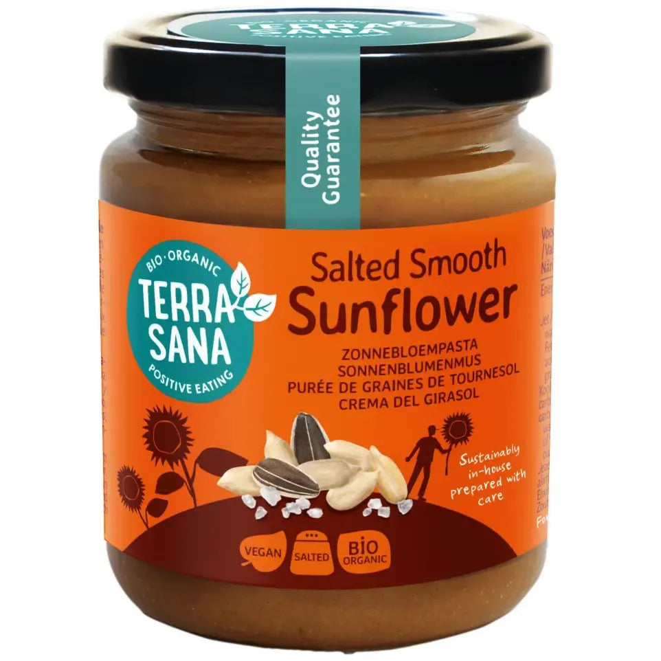 Terrasana produceert deze zonnebloempitpasta op een milieuvriendelijke manier, met zonnebloempitten uit Roemenië en verwerking in Nederland. Zo weet je zeker dat je niet alleen goed voor jezelf, maar ook voor de wereld om je heen kiest. De eenvoudige ingrediëntenlijst en het biologische keurmerk onderstrepen de toewijding aan puurheid en duurzaamheid. Een bewuste keuze voor elke dag.